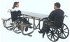 This 8 foot aluminum picnic table is the solution to your ADA compliant business. ADA requires a table to be 24" x 30' x 29" for easy wheelchair access. The sturdy "J2" style frame is made of 2 3/8" galvanized steel. The top plank is extended for a wheelchair to fit on the end. Opening on the side creates space for an additional wheelchair. Aluminum picnic tables are low maintenance and cost effective as they don't peel or splinter like natural materials. The standard frame finish is galvanized steel. Black powder coated galvanized steel is available if specified.