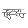 This 6 foot rectangular aluminum picnic table is light weight yet durable for a reasonable price. The bolted 2 3/8" frame is high strength galvanized tube. This vandal-resistant picnic table will serve many years of service. Cross braces are 1 5/16" O.D. Galvanized tube and seat brackets are 10 gauge galvanized steel. The light-weight frame is portable for convenience. This aluminum picnic table is a great addition to your park, grilling grounds, campground, or recreation area.