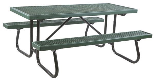 - Plastisol-coated expanded metal top & seats for weather resistance and easy cleaning