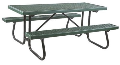This 6 foot picnic table has a 'CJ' style frame made of 1 5/8" galvanized steel. The top and seat are made of plastisol with 2" x 2" x 3/16" steel cleats. Center cleat is 1 1/2" steel channel which provides level top and sturdier attachment of the 1 5/16" galvanized cross braces. Our plastisol picnic tableareheavy PVC coating on 3/4" expanded metal with 2" plastic coated steel border. The table top planks are 2" x 30" and the seats planks are 2" x 10". Plastisol picnic tables are a great addition for HOA communities as they are low maintenance and durable. The standard frame finish is galvanized steel. Black powder coated galvanized steel is available if specified.