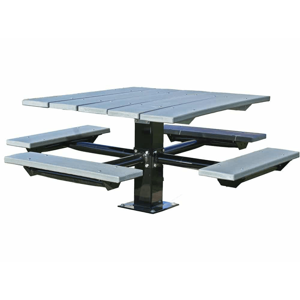 Commercial 48″ Surface-Mount Pedestal Post Square Recycled Plastic Picnic Table